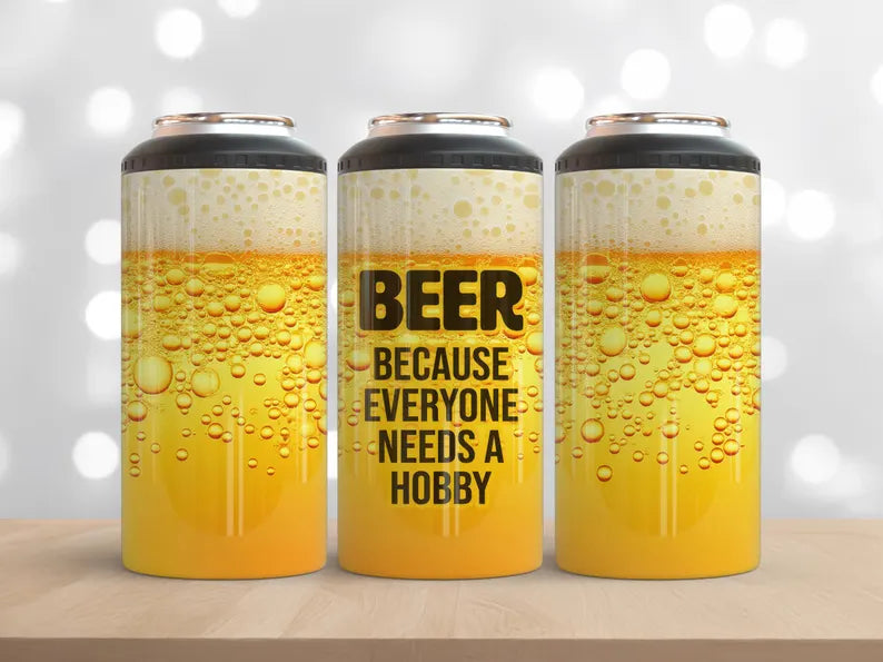 - Your choice of Standard 4 in 1 Can Cooler- Holds 12oz cans, skinny cans, and 12oz bottles. Includes a lid to turn it into a 14 oz tumbler and a bottle opener on the bottom. OR Bluetooth 4 in 1 Can Cooler- Exactly the same, but it has a bluetooth speaker on the bottom instead of the bottle opener.