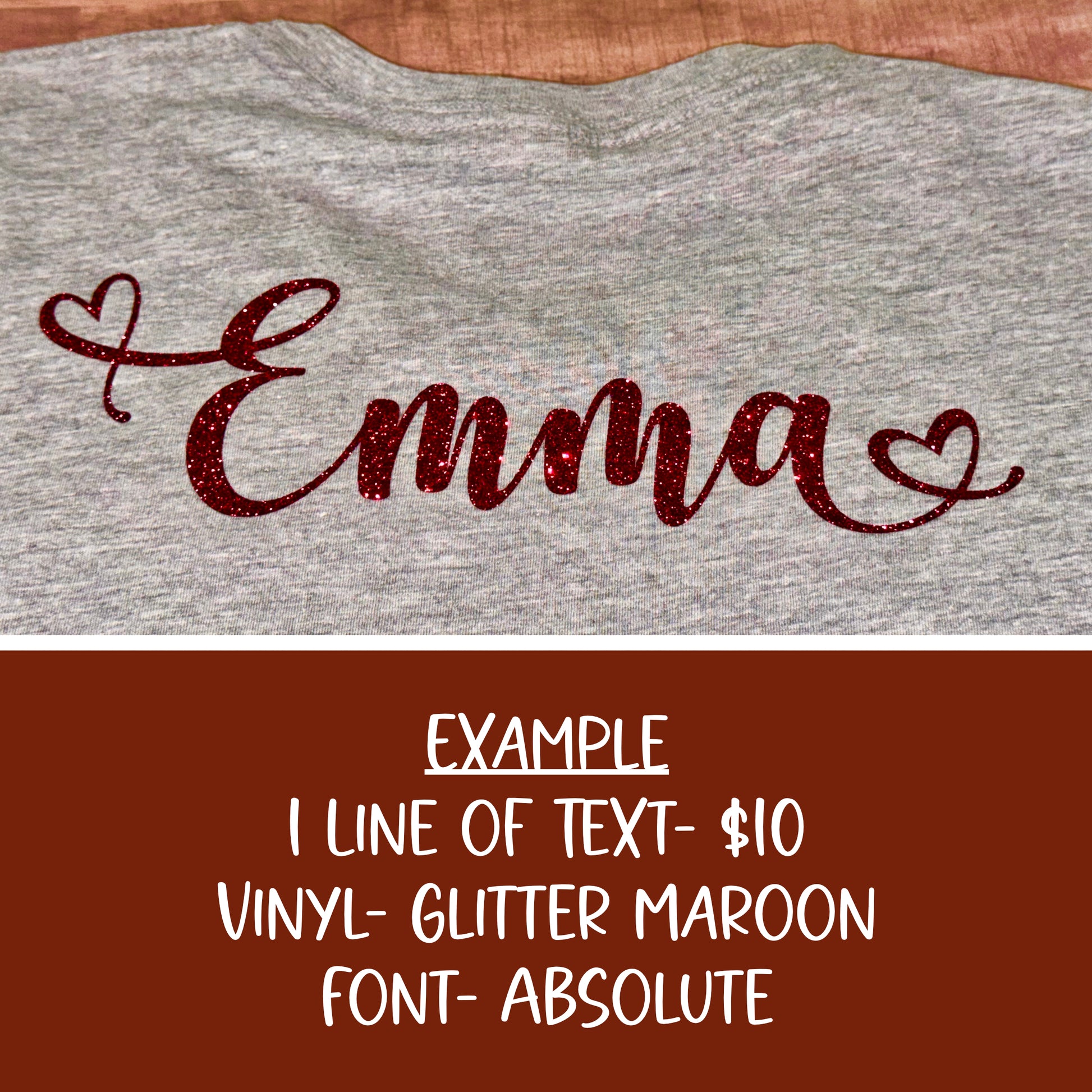 Make your spirit wear one-of-a-kind with personalized back designs! Add your name, jersey number, graduation year, nickname, or slogan — whatever shows your team spirit best. Choose from standard or glitter vinyl in any color, including metallics such as gold or silver.