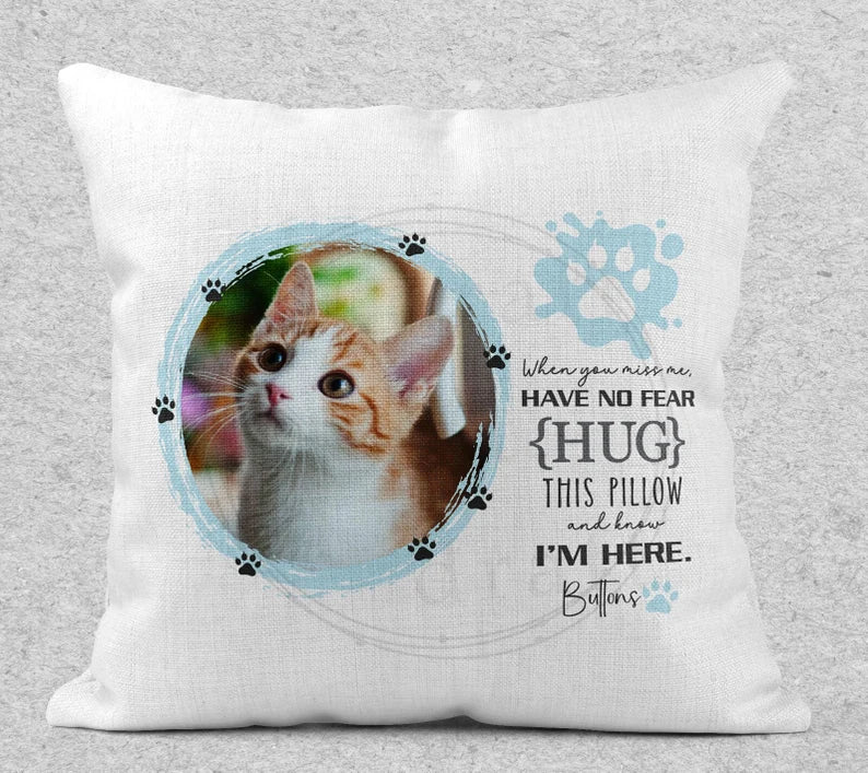 Hug Me Memorial Cat Pillow, Blue